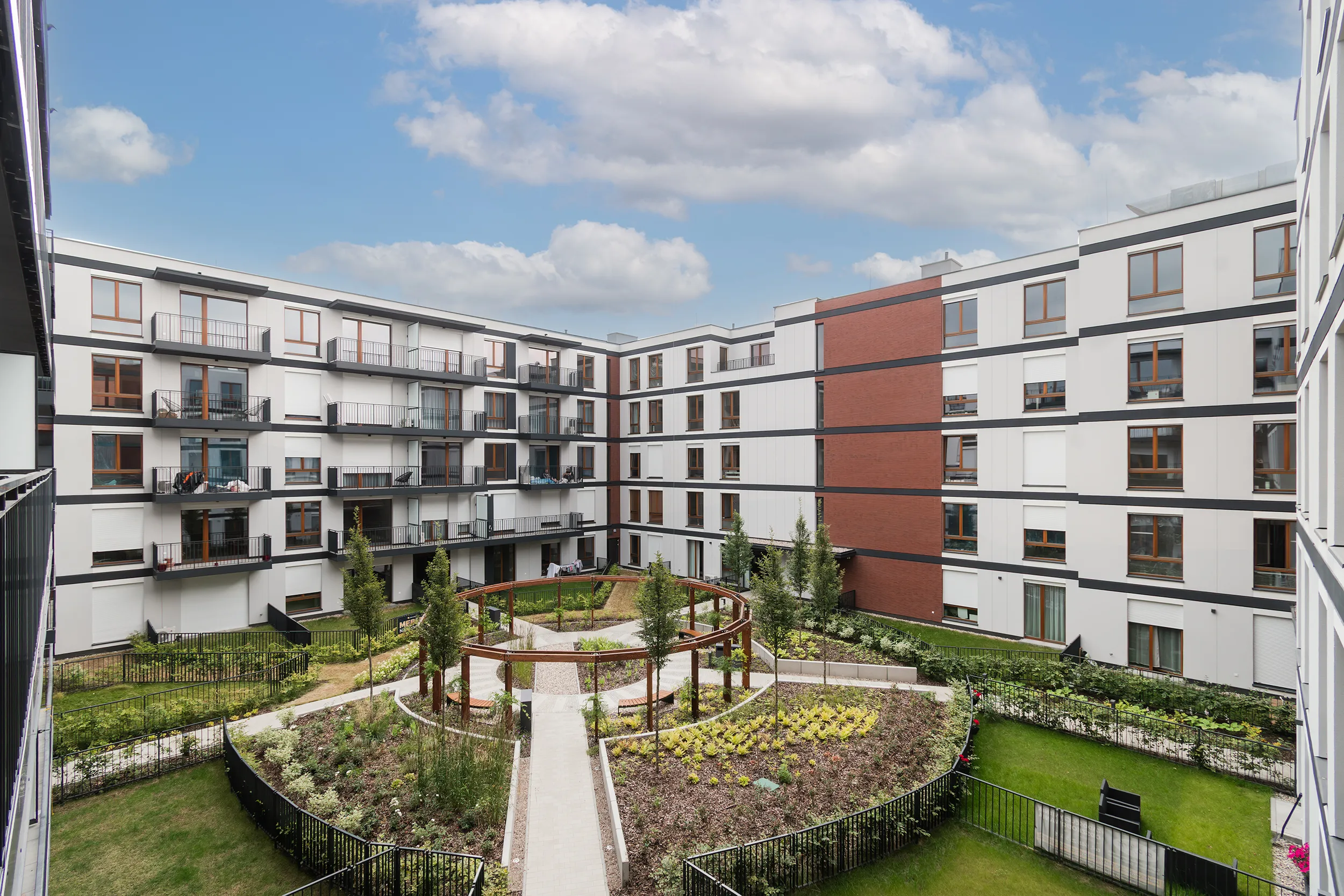 – Nowoczesna zabudowa z szerokimi alejkami, zadbaną zielenią i infrastrukturą rowerową.